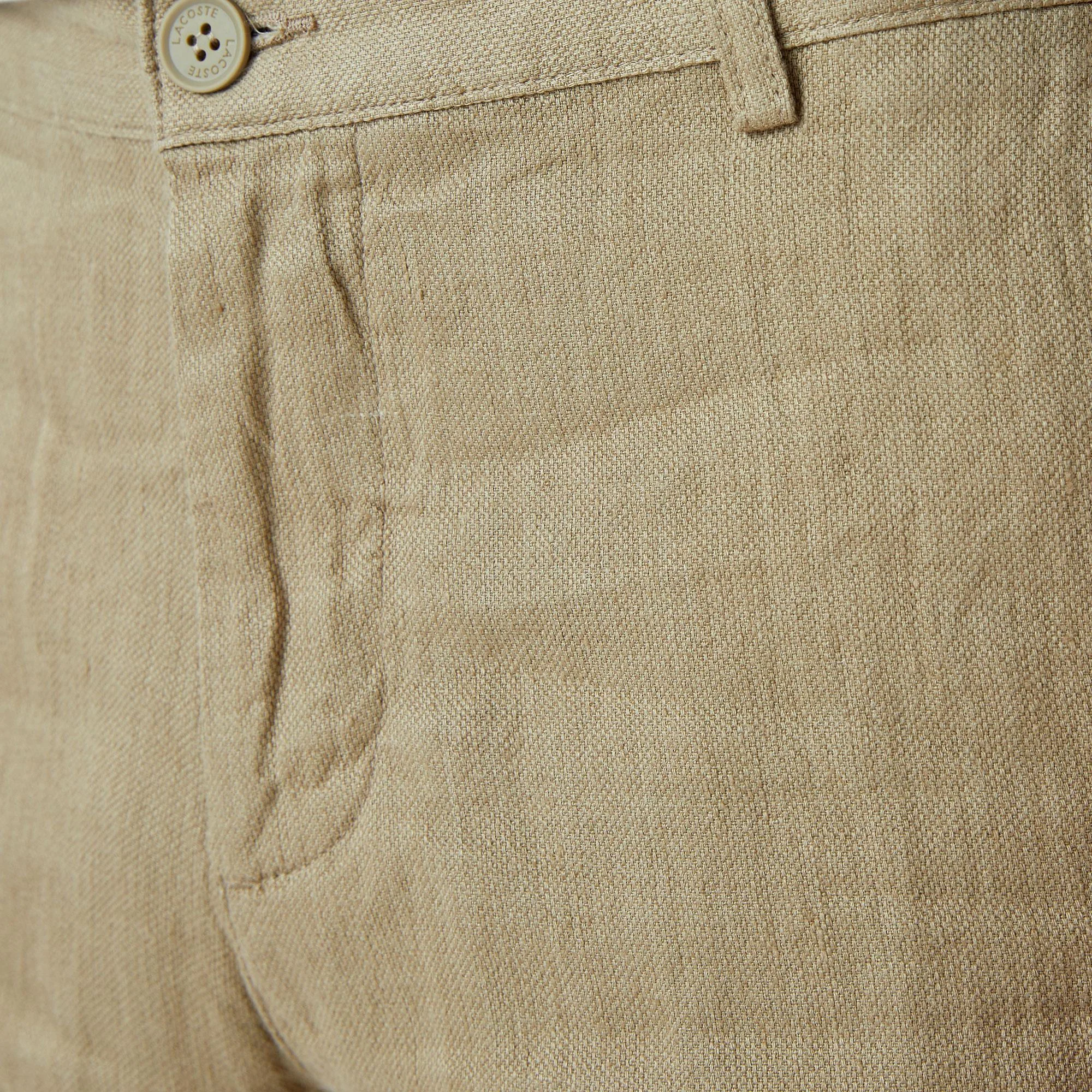 Выполнены из органического льна\Логотип на заднем кармане\Материал:100%лен\Рост модели 188 см, размер одежды 40