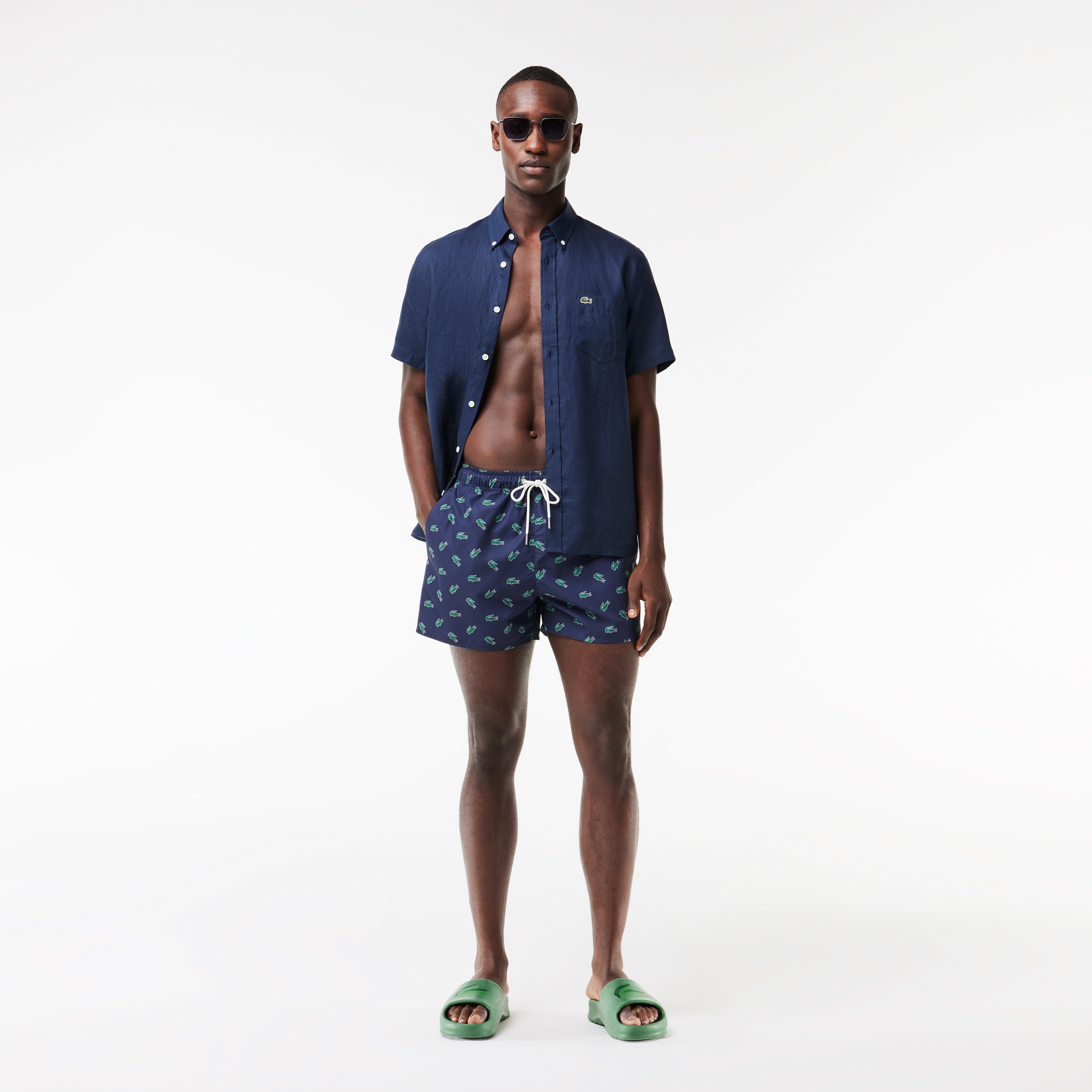 Плавки с крокодиловым принтом \ Переработанный полиэстер \ Длина : 37 см / 14,5 дюйма \ Регулируемый эластичный пояс с проушинами \ 3 кармана \ Сзади вышит крокодил \ Эластичный пояс с регулируемой кулиской\Прорезные карманы\Брендинг по всему изделию\Лог