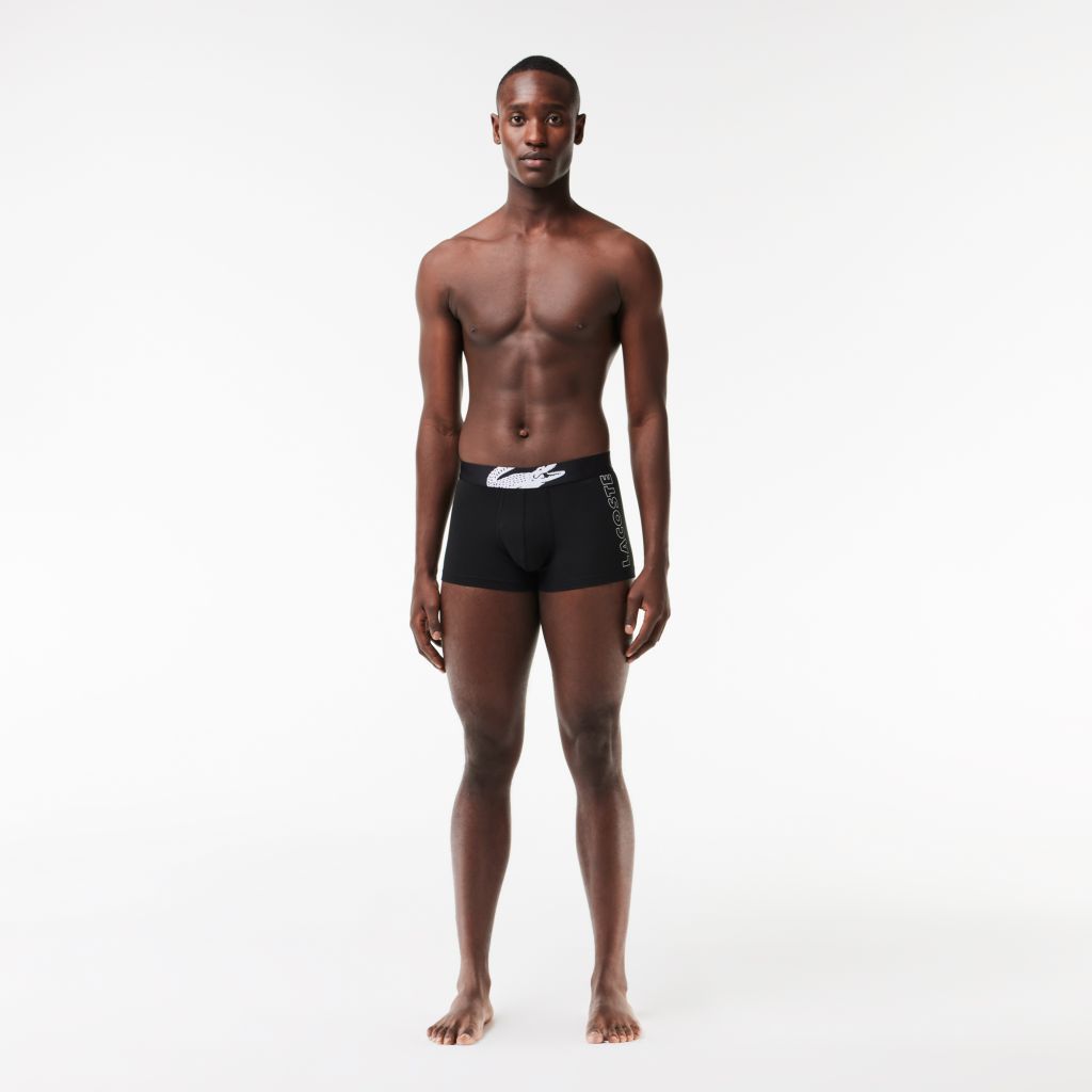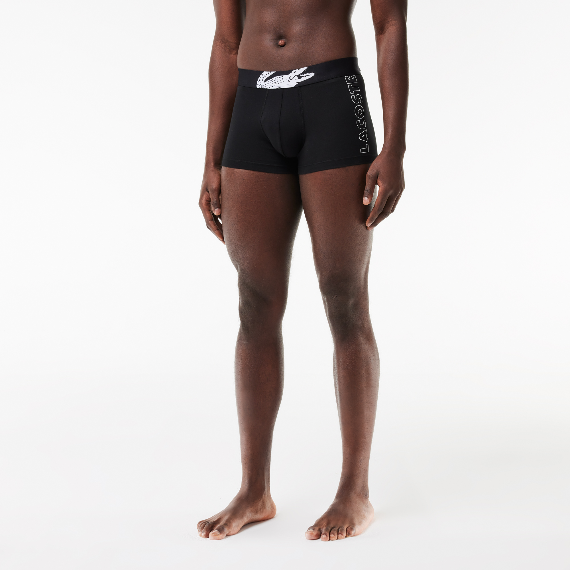 Плавки с крокодиловым принтом из 3 комплектов \ Контрастный крокодил на поясах \ Эластичный хлопковый трикотаж \ Принт Lacoste на одном из трех плавок \ Нижнее бельё возврату не подлежит \ Контрастный крокодил на поясе\Эластичный материал, обеспечивающи