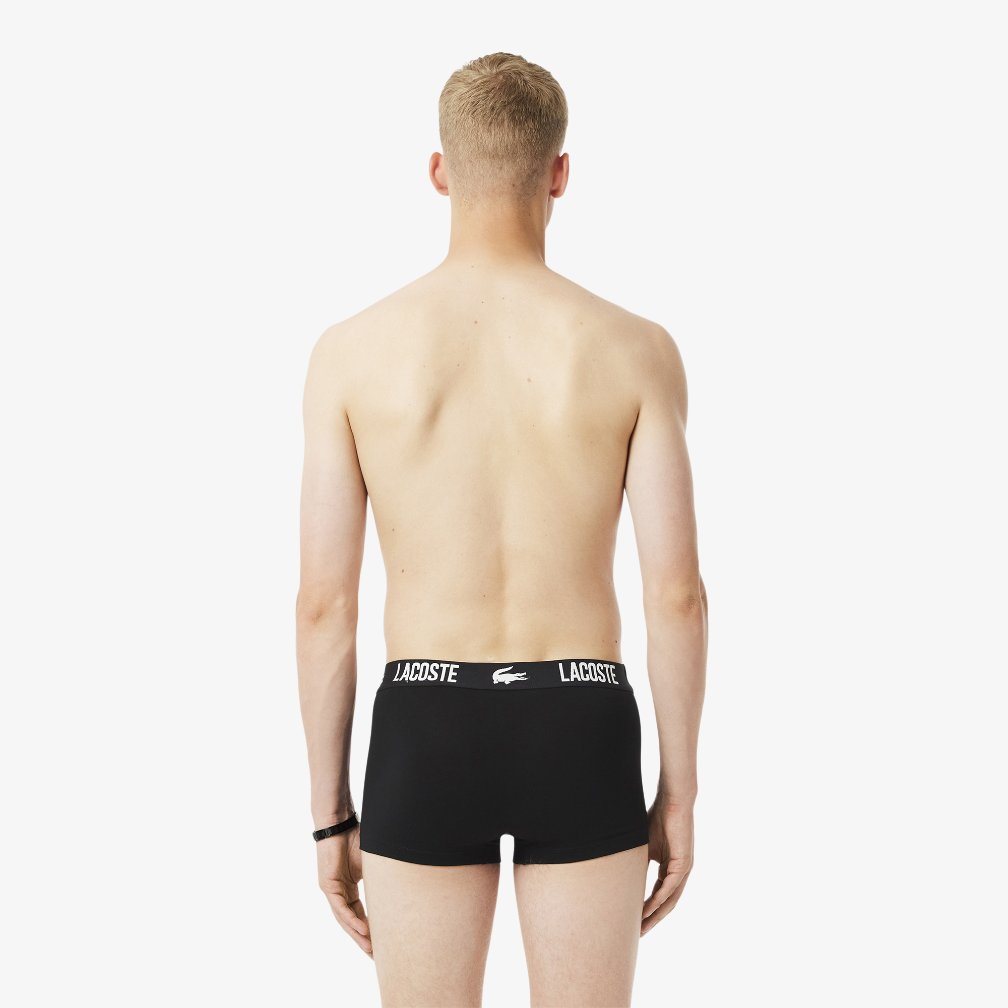 Плавки из эластичного хлопка в 3 упаковке \ Эластичный трикотаж из хлопка и эластана \ Удобный, поддерживающий крой при любых обстоятельствах \ Жаккардовый пояс с логотипом Lacoste и крокодиловой кожей \ Нижнее бельё возврату не подлежит \ Материал: 95