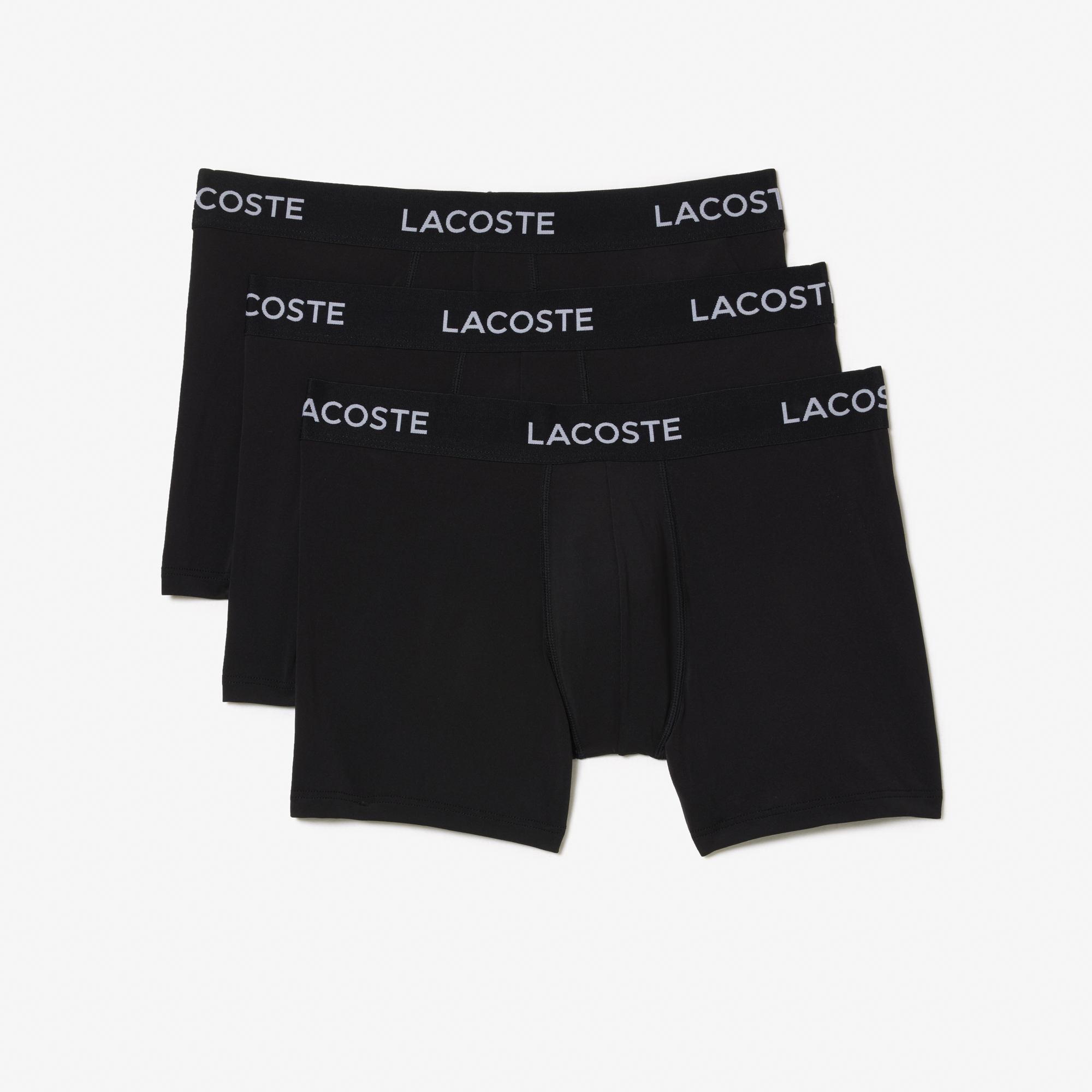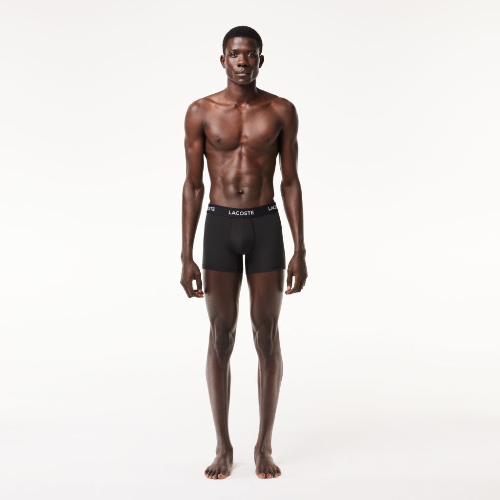 Однотонные плавки из микрофибры в 3 упаковке \ Микрофибра \ Фирменный эластичный пояс Lacoste \ Длинный крой, обеспечивающий комфорт и поддержку \ Расположение надписи Lacoste в разных моделях может отличаться \ Нижнее бельё возврату, обмену или возмещени