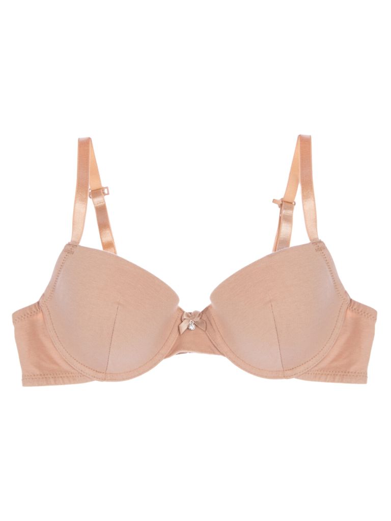 Бюстгальтер с формованными чашками с косточкой. Застежка на 2 крючка, благодаря 3 рядам креплений регулируется по объему. Лямки можно отрегулировать по длине и при необходимости соединить на спине между собой.