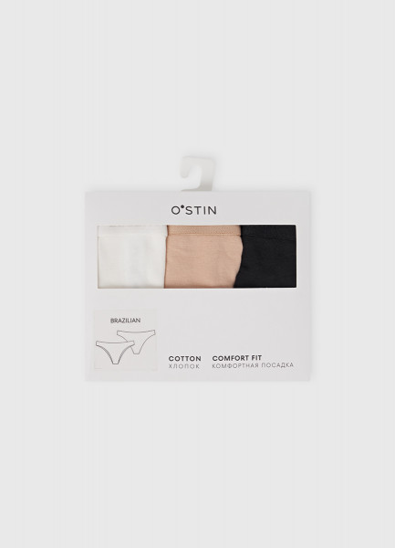 Трусы-бразилиана, 3 шт., Белый