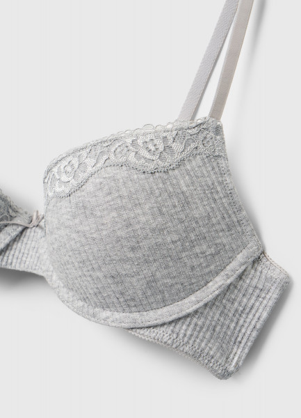 Кружевной бюстгальтер с эффектом пуш-ап, Серый