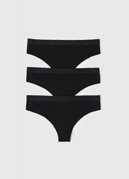 Трусы-бразилиана с мягкой резинкой, 3 шт., Черный