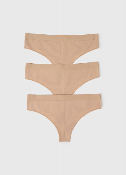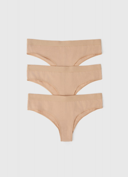 Трусы-бразилиана с мягкой резинкой, 3 шт., Бежевый