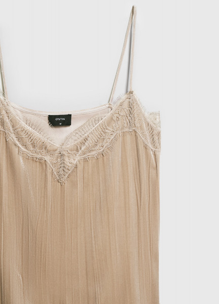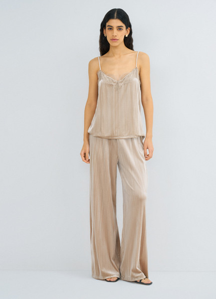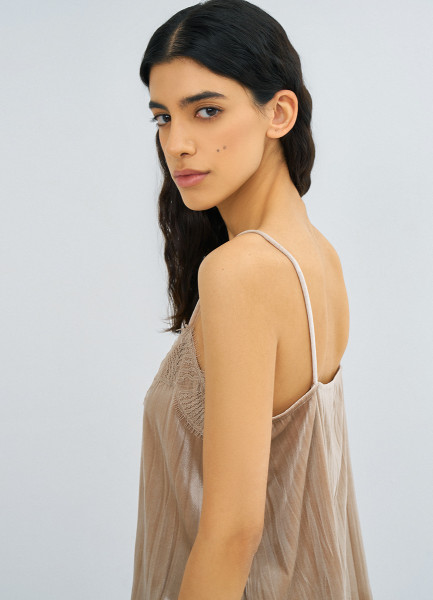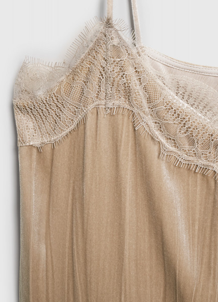 Бархатный топ с кружевом, Бежевый