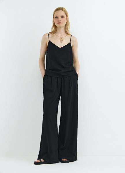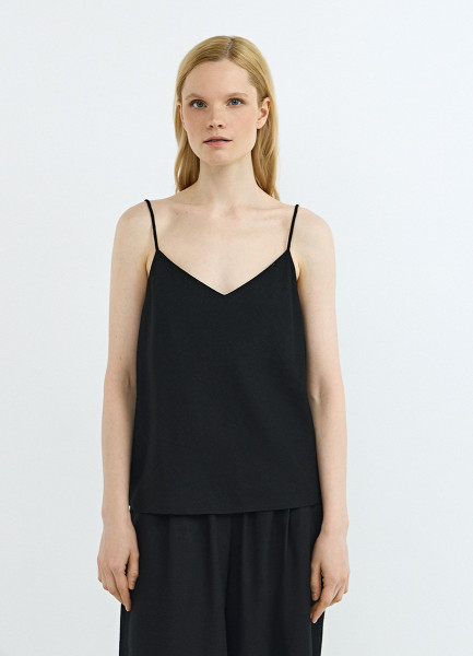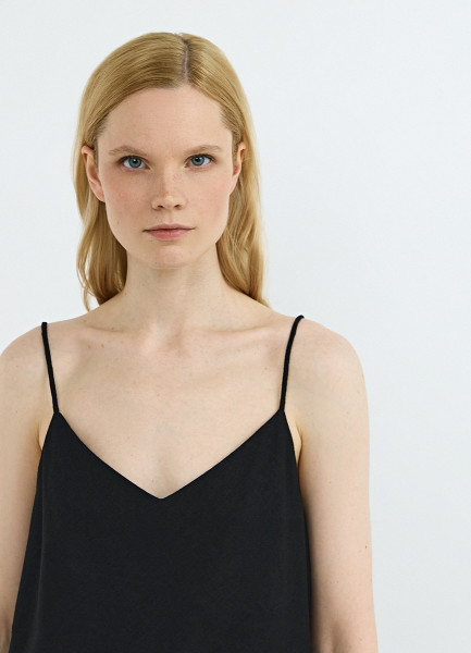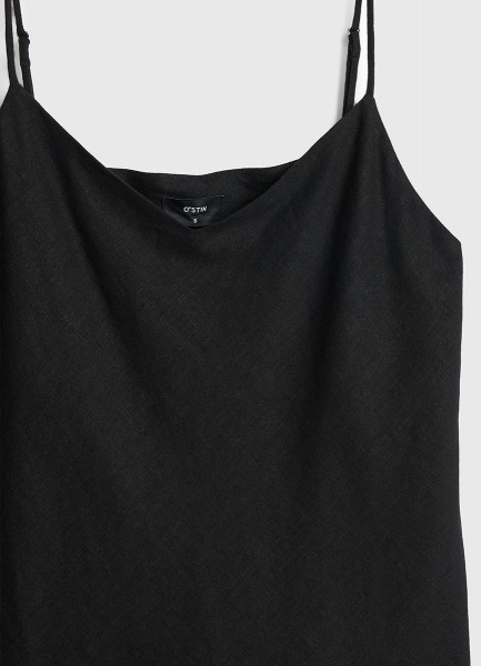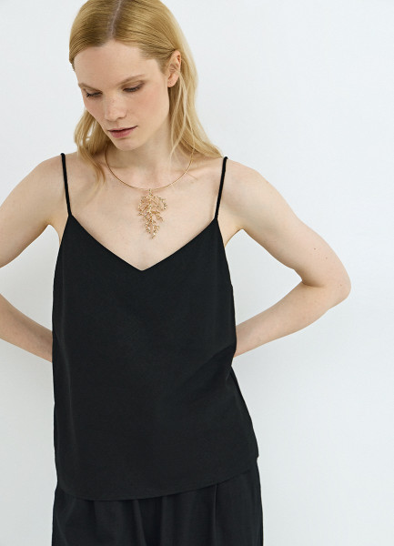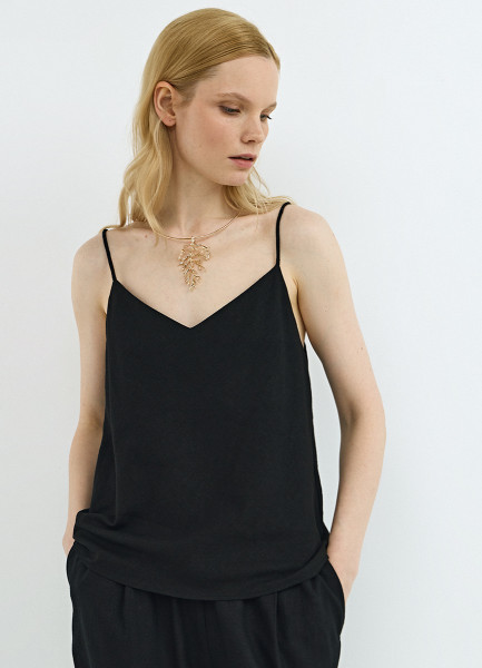 Топ изо льна на бретелях, Черный