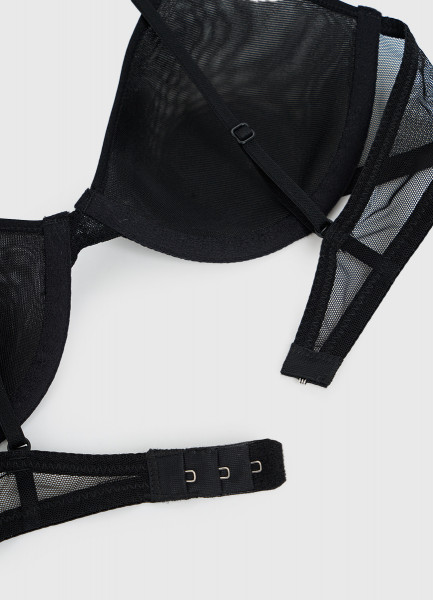 Бюстгальтер на косточках с сетчатыми чашками, Черный