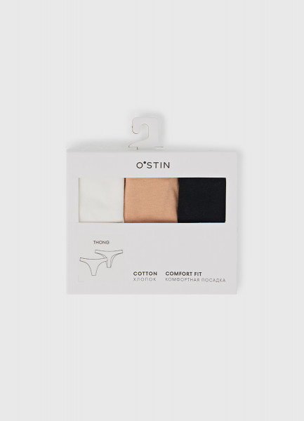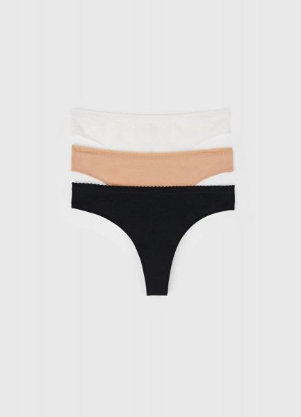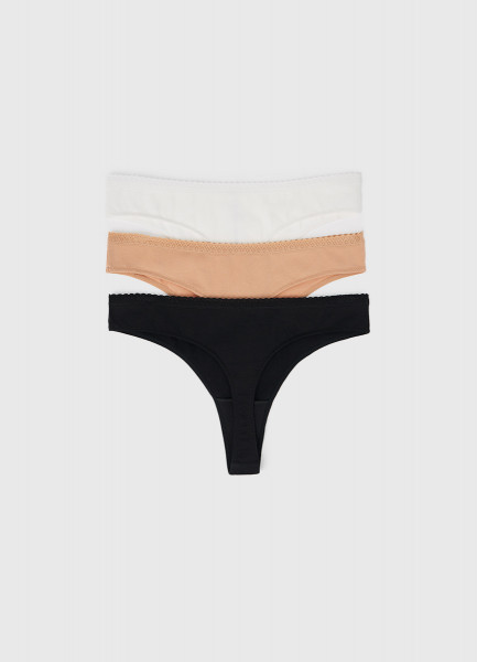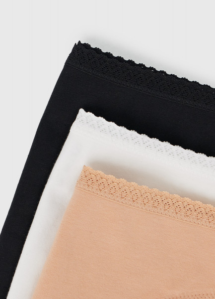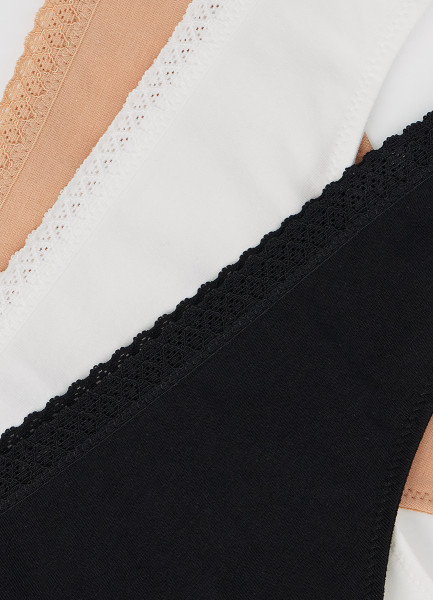 Трусы-танга с кружевом по поясу, 3 шт., Белый