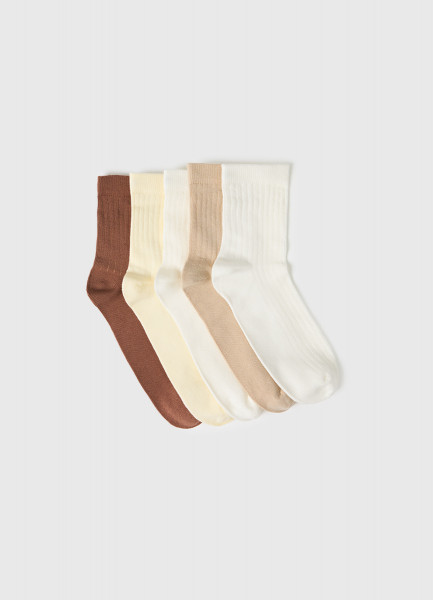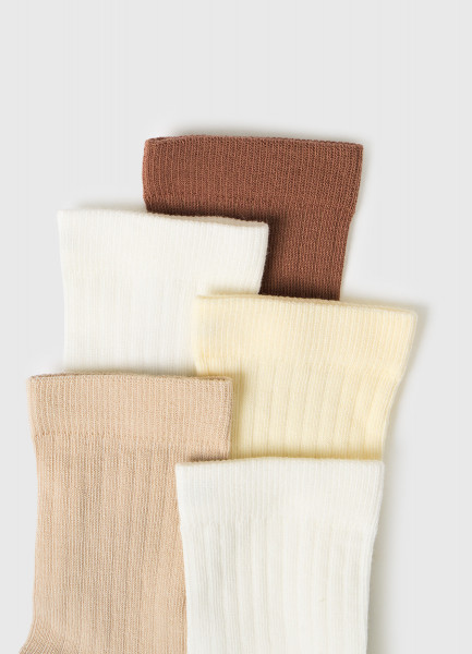 Короткие носки в рубчик для девочек, 5 пар, Бежевый