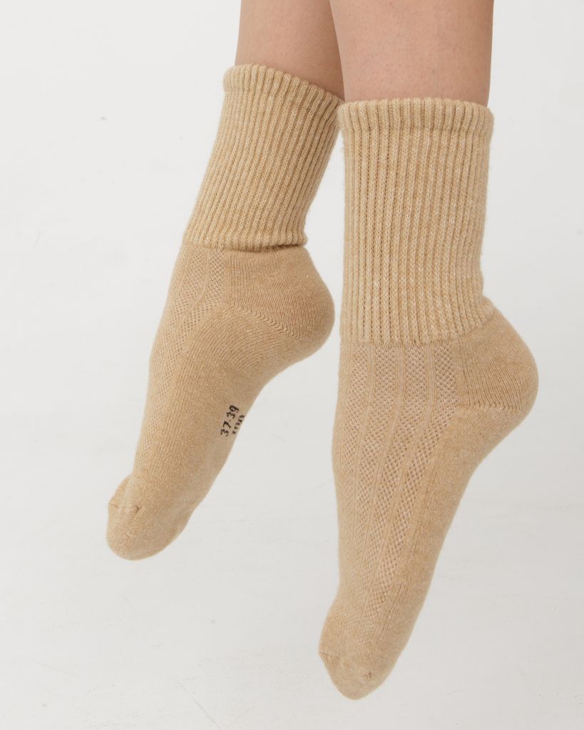 Эти бежевые теплые носки из монгольской шерсти — отличный выбор для уютных и комфортных дней. Натуральная монгольская шерсть обеспечивает мягкость и великолепное сохранение тепла, надежно защищая ваши ноги от холода. Универсальный бежевый цвет делает носки стильным и практичным аксессуаром, подходящим для любого гардероба. Они идеально подойдут для дома и прогулок, даря ощущение тепла и уюта в любую погоду.Размерная сетка для взрослых носков:Длина стопы, мм