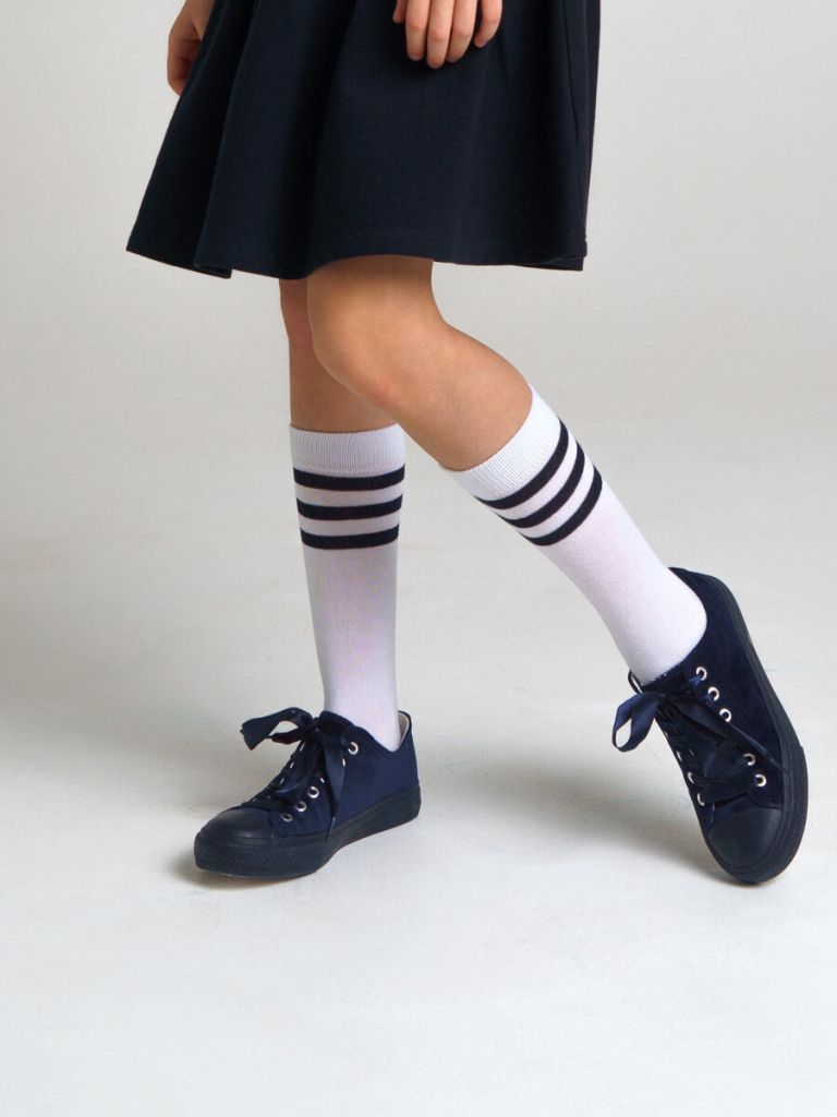 Совет по стилю: сочетайте эти удобные элегантные высокие гольфы с классическими юбками, сарафанами и туфлями или балетками от PlayToday. А для спортивных образов — с кроссовками и шортами бренда.