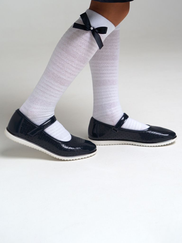 Такие классические белые гольфы для подростков удобно носить каждый день — они не сползают, не собираются и остаются аккуратными в течение всего дня. Украшение в виде бантика делает модель подходящей не только для уроков, но и для торжественных мероприятий — линейки, 1 сентября, праздники.