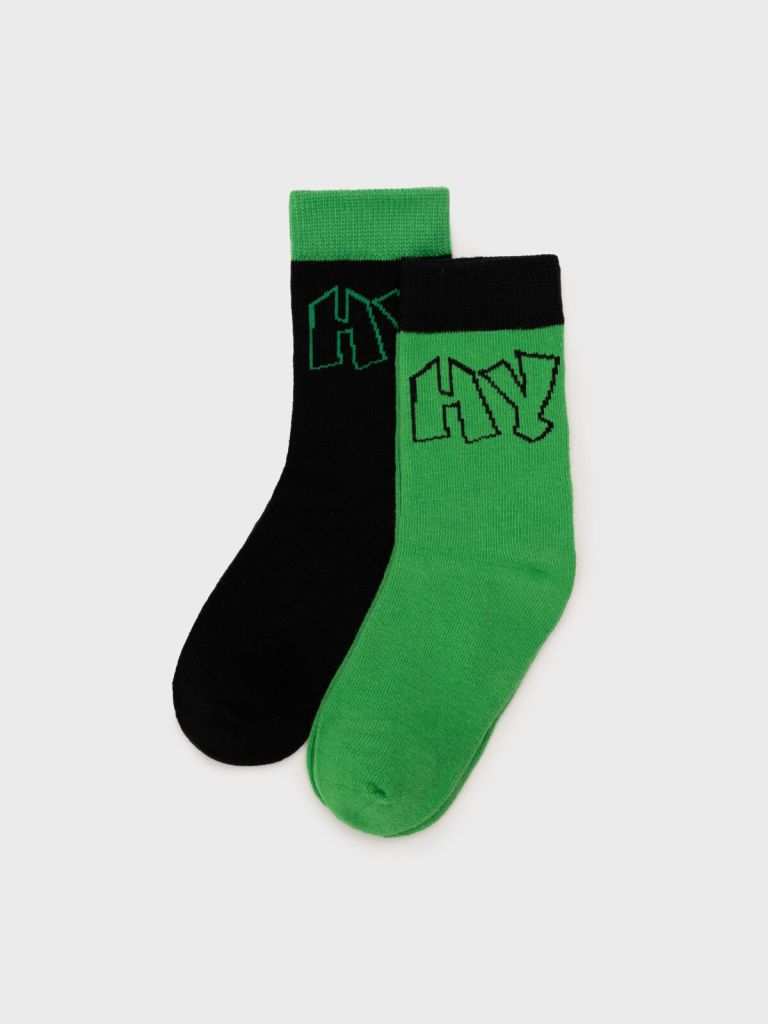 Набор детских носков для мальчика. Носки с высоким содержанием хлопка. Комфортная модель с усиленным мыском и пяткой. Мягкая широкая резинка хорошо фиксируется по ноге ребенка. 2 пары в сете.