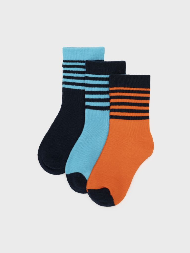 Набор детских носков для мальчика. Носки из высококачественного хлопка с добавлением нейлона и эластана. Комфортная модель с усиленным мыском и пяткой. Мягкая широкая резинка хорошо фиксируется по ноге ребенка. 3 пары в сете.