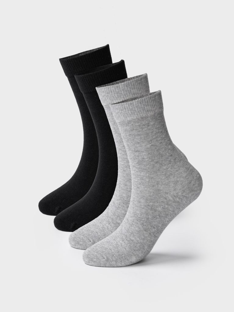 Этот комплект из 4 пар — настоящая находка для активных школьников. Универсальные цвета (тёмно-синий, серый) легко сочетаются с любой одеждой, а мягкий дышащий хлопок обеспечивает комфорт на весь день — в школе, на прогулке или в поездке.