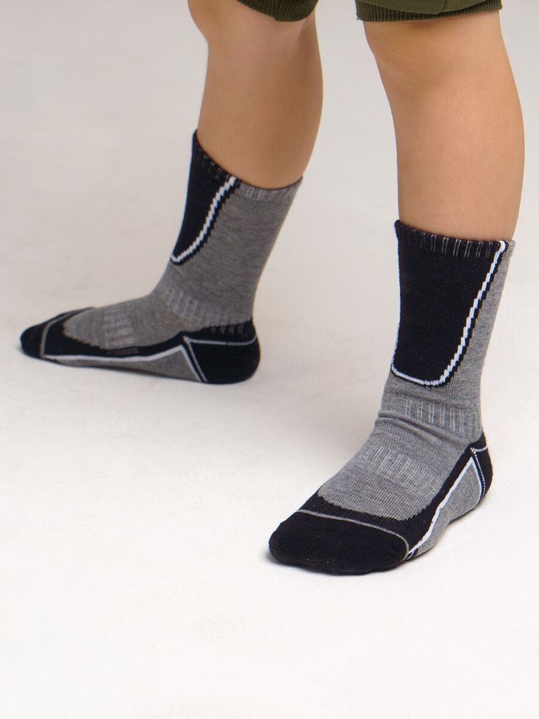 Термоноски. Разная степень плотности в мысочной/пяточной зоне и области свода ступни обеспечивают локальную компрессию, что стимулирует кровообращение и обеспечивает комфортный микроклимат ног в холодную погоду.