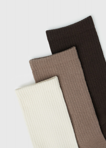 Носки в рубчик, 3 пары, Бежевый