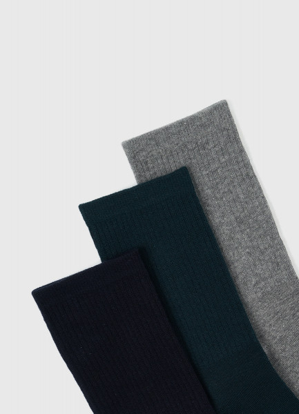 Высокие носки в рубчик с поддержкой стопы, 3 пары, Синий
