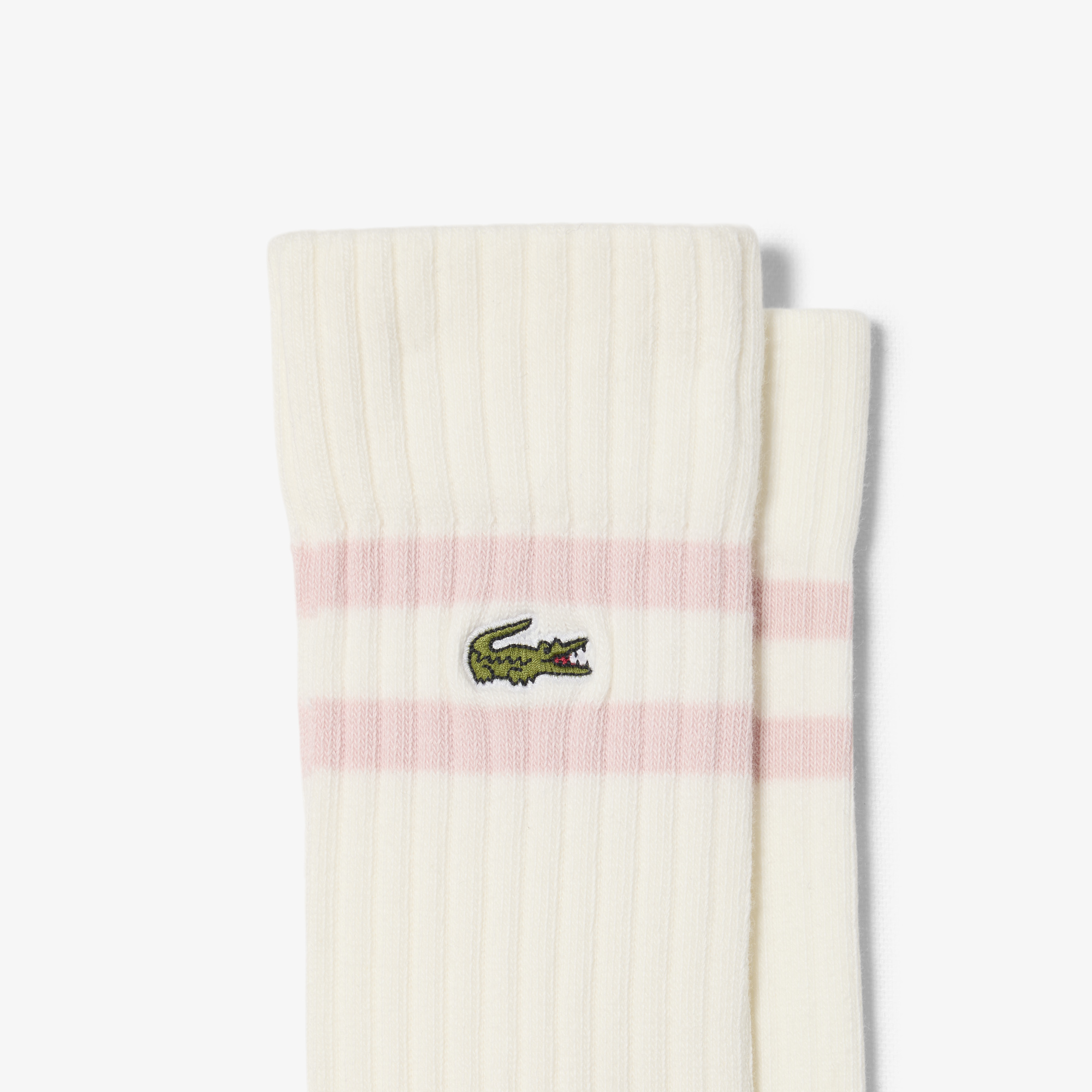Хлопчатобумажные носки в рубчик \ Длинные носки \ Мягкая подошва \ Контрастная полоска \ Вышитый логотип \ Трикотаж в рубчик \ Трикотаж в рубчик\В контрастную полоску\Вышитый логотип на икре\Материал: 100% хлопок