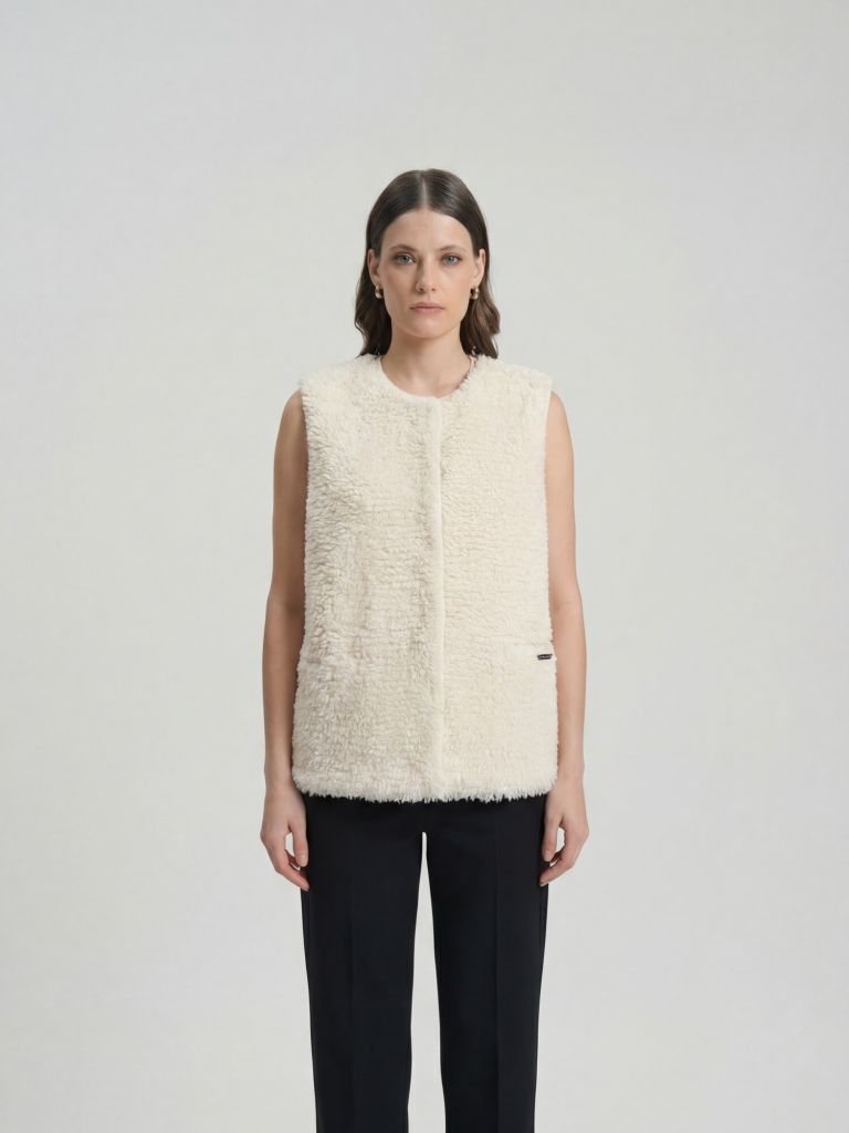 Уютный жилет из 100% монгольского кашемира в мягком кремовом оттенке — идеальное сочетание тепла, лёгкости и природной элегантности. Модель выполнена из пушистого кашемира с эффектом «овечьей шерсти», что придаёт изделию объём и особую фактуру.Детали и дизайнПрямой крой и мягкая текстура делают жилет комфортным в носке. В конструкции предусмотрены боковые карманы и скрытая застёжка, что подчёркивает минималистичный и современный стиль. Тёплый кремовый оттенок добавляет образу свежести и лёгкости.Как и с чем носитьС тонким кашемировым или хлопковым джемпером — уютный повседневный вариант.С рубашкой и юбкой миди — элегантный образ для офиса или прогулки.С широкими брюками и ботинками — актуальный городской стиль в духе casual chic.Под пальто или тренч — дополнительный слой тепла без утяжеления силуэта.Кремовый оттенок гармонично сочетается с шоколадным, графитовым, серым и карамельным, подчёркивая природную палитру и создавая ощущение мягкого уюта.УходРучная стирка в холодной воде или профессиональная химчистка.Сушить горизонтально, вдали от источников тепла и прямых солнечных лучей.Не выкручивать, хранить в сложенном виде.Кашемировый жилет в кремовом оттенке — универсальная вещь для межсезонья, которая добавляет образу текстурности, тепла и безупречной мягкости.