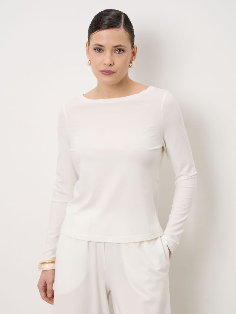 Лонгслив из тенселя 01762 в молочном оттенке — универсальная базовая модель, которая сочетает минималистичный дизайн и высокий уровень комфорта. Мягкая, гладкая ткань приятно прилегает к телу и создаёт аккуратный силуэт. Лонгслив легко вписывается в повседневный гардероб и отлично сочетается с брюками, юбками и жакетами, формируя элегантные и современные образы.