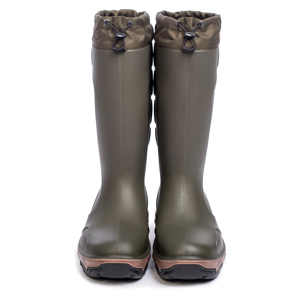 Сезон: зимаt комфорта до – 35 градусовДля:– рыбаков– охотников– путешественников– туристов– любителей активного зимнего воздухаВодонепроницаемые (благодаря методу прилива слоев друг другу они становятся полностью непроницаемые сверху до низу), теплые (полиуретан – отличный теплоизолятор), нескользящие на любой поверхности (благодаря особым полимерам в составе подошвы).Подошва сапог BIGFOOT хаки спроектирована по технологии «PU+» состоит из трех проверенных компонентов:Полиуретан с его полезными свойствами: высокой степенью эластичности, твердости и эволюционирующей износостойкостью.2. Специальный слой – вспененный полимер с множеством мелких обособленных ячеек воздуха, который за счет своей структуры создает эффект амортизации «light step» и изоляции холода. Дополнительная антибактериальная добавка «Аntibacterial» увеличивает срок эксплуатации сапог и не позволяет развиваться патогенной флоре внутри сапога.3. Стойкая к низким температурам резина на основе нитрильных каучуков не дубеющая при температурах до -45С, обеспечивающая «Anti-slip» (антискольжение) на любых поверхностях и защиту от растворов кислот, щелочей с концентрацией до 50%.В комплекте – многослойный съемный чулок:Наружный слой сделан из воздухопроницаемого, влагу отводящего трикотажа “ВСЕ СУХО”.Специальный слой из эластичного пенополиуретана отвечает за впитывание излишней влаги при обменных процессах, и именно благодаря ему Ваши ноги всегда остаются сухими и теплыми.Внутренний меховой слой с содержанием натуральной шерсти 80%, теплый и быстросохнущий, мягко и плотно облегает и фиксирует ногу.Сапоги гигиеничны в продолжительной носке, не вызывают потоотделение и развитие бактерий, практически исключают неприятный запах.Стелька чулка выполнена из вспененного материала ORTHOLITE с антибактериальной пропиткой обеспечивающего дополнительную амортизацию. Манжета с утяжкой из влагонепроницаемой ткани «Оксфорд», позволяет утянуть сапог по ноге, предотвратив попадание любой влаги во внутрь, обеспечив дополнительно защиту.Рисунок протектора самоочищается от снега и грязи при ходьбе и обеспечивает устойчивость на скользких, обледенелых, зажиренных и мокрых поверхностях.В пяточной части предусмотрена специальная шпора для удобного и быстрого снятия сапога.Спускные желобки по бокам сапог на внешней части подошвы способствуют удалению жидкости.