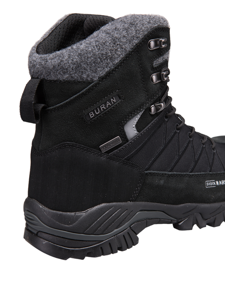 Высокие ботинки EDITEX BURAN — превосходный выбор для походов и активного отдыха на природе зимой. Верх выполнен из комбинации высокотехнологичного материала Beproteck и натурального нубука, пропитанного водонепроницаемым составом. Мембрана-подкладка WWB (Waterproof Windproof Breathable) поддерживает комфортный микроклимат внутри ботинка, обладает хорошими дышащими свойствами. За тепло здесь отвечает 400 граммов утеплителя THINSULATE — вариант на самые суровые морозы. Комфорт и дополнительную амортизацию обеспечивает стелька Ortholite, благодаря специальному составу, она не меняет своих свойств с течением времени. Стелька обладает антимикробным покрытием, которая защищает от инфекций и неприятных запахов. Высокая конструкция защитит от попадания снега внутрь и обеспечит фиксацию лодыжки. Фирменная подошва USP, состоит из слоев EVA и прочной резины, обеспечивает легкость, хорошую амортизацию, стойкость к истиранию и надежное сцепление с любой поверхностью.