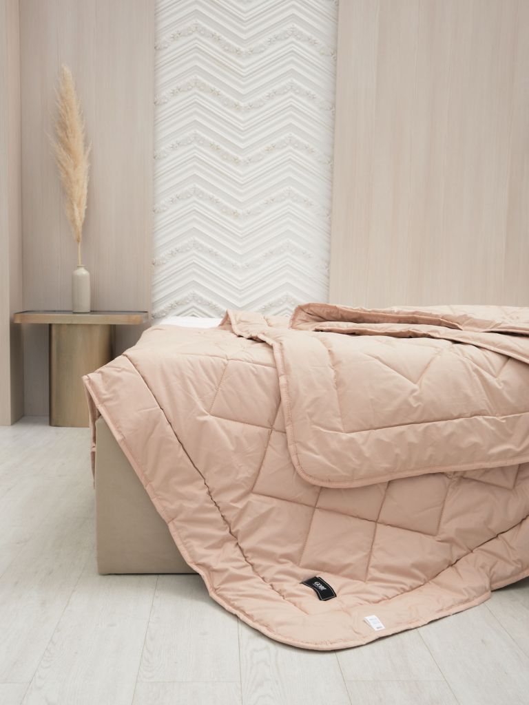 Подходит для сна в любое время года. Согревает в прохладные ночи и сохраняет комфорт без перегрева в межсезонье. Хороший выбор для спальни, где важны мягкость, свет и ощущение уюта.