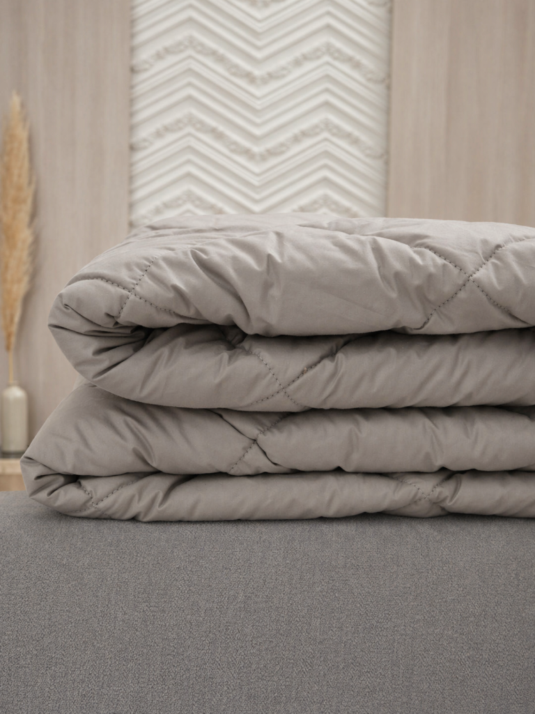 Аккуратная стежка фиксирует наполнитель и равномерно распределяет его внутри. Лаконичный дизайн без лишних элементов — только чистая форма, мягкие линии и спокойная фактура. Такое одеяло легко вписывается в минималистичный интерьер и не отвлекает от ощущения уюта.