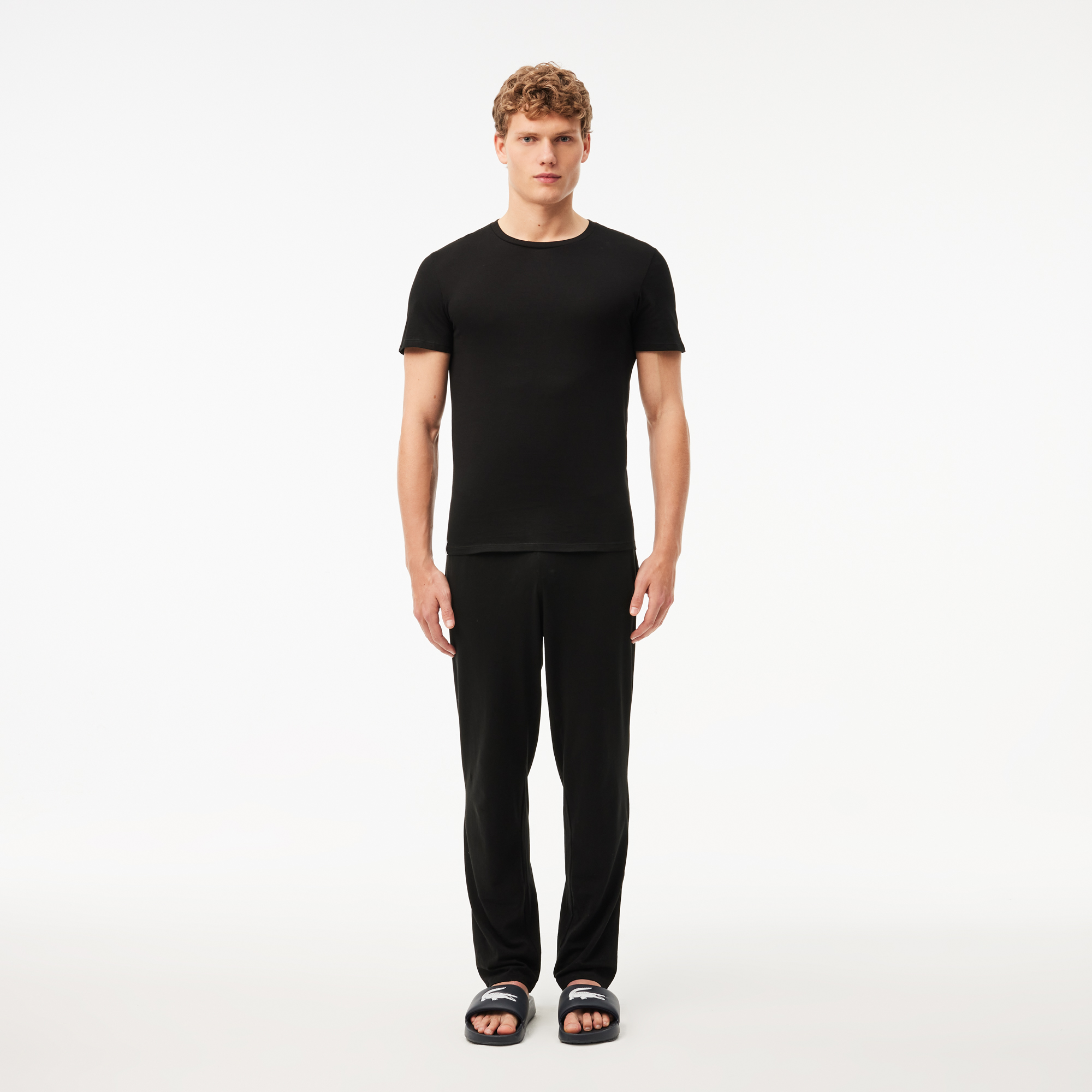 Хлопчатобумажные футболки для отдыха в 3 упаковки \ Круглый вырез в рубчик \ Легкий хлопчатобумажный трикотаж \ Приталенный крой \ Бирка в виде крокодиловой кожи внизу одежды \ Материал: 100% хлопок\Данный товар возврату не подлежит