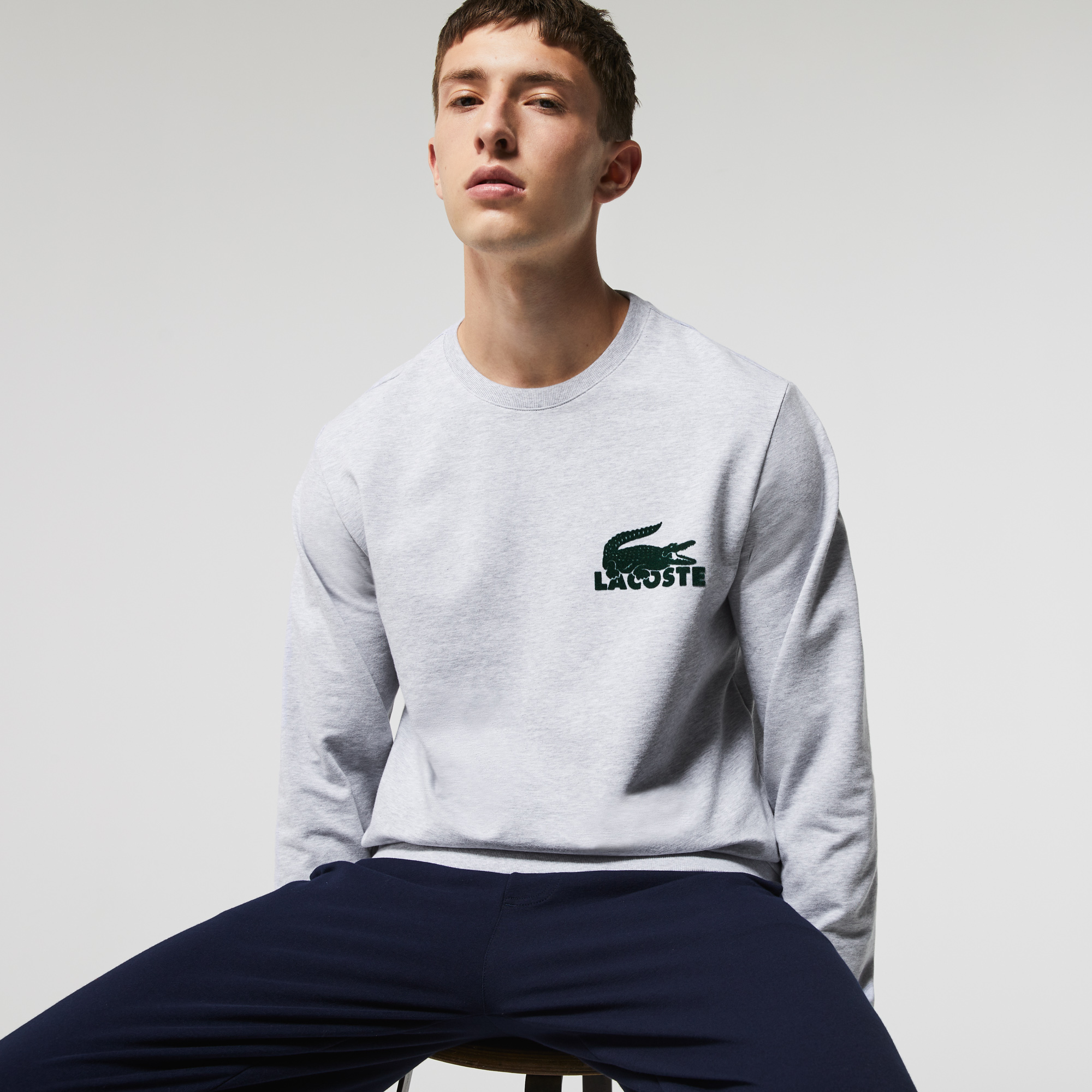 Круглый вырез в рубчик\Отделка в рубчик манжетов и нижнего края\Эластичная хлопковая флисовая ткань\Велюровый крокодил и фирменная надпись на груди\Материал: 67% хлопок 30% полиэстер 3% эластан, 95% хлопок 5% эластан\Данный товар возврату не подлежит\Рост