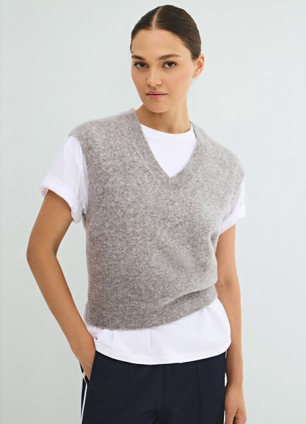 Укороченный вязаный жилет, Серый