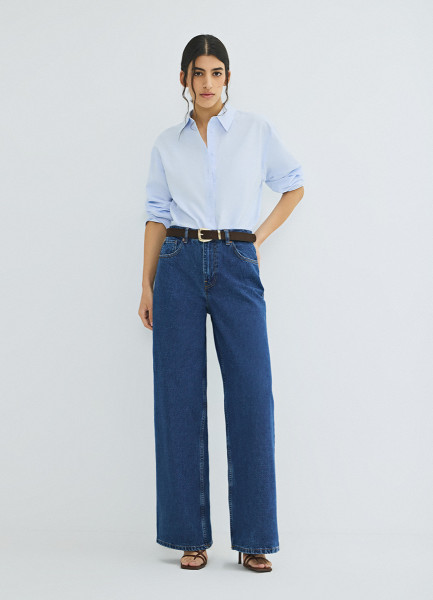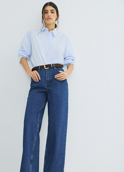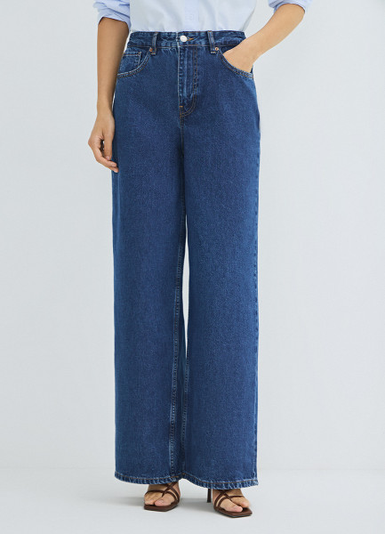 Широкие джинсы с высокой посадкой, Синий