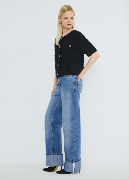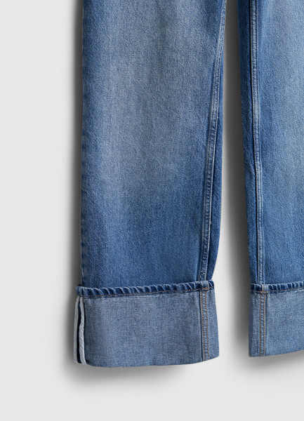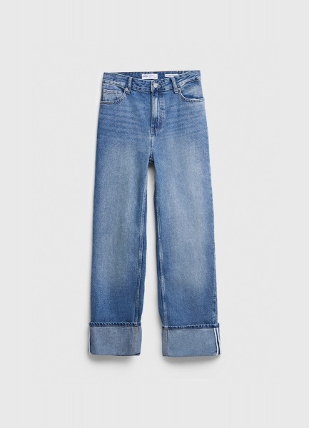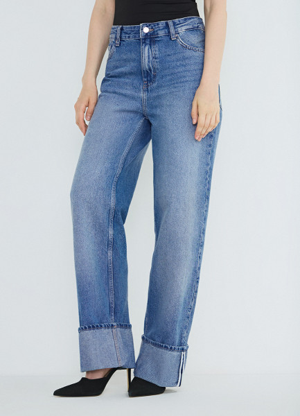Прямые джинсы с отворотами, Голубой