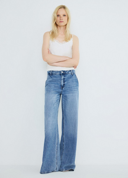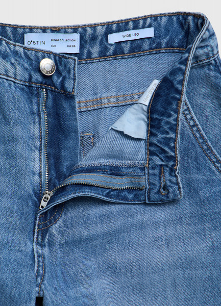 Широкие джинсы с высокой посадкой из лиоцелла, Голубой