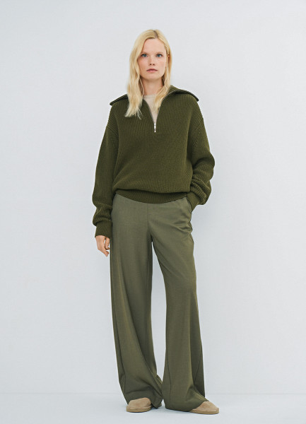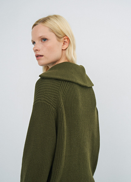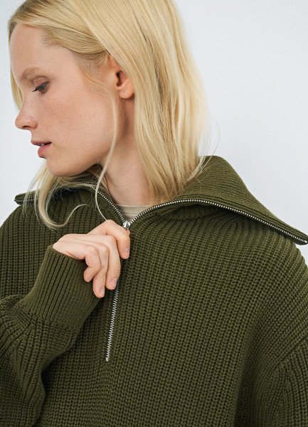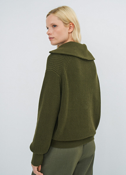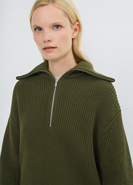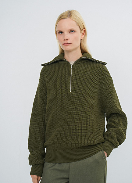 Джемпер с воротником-стойкой на молнии, Зеленый