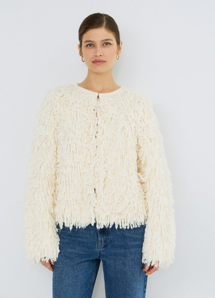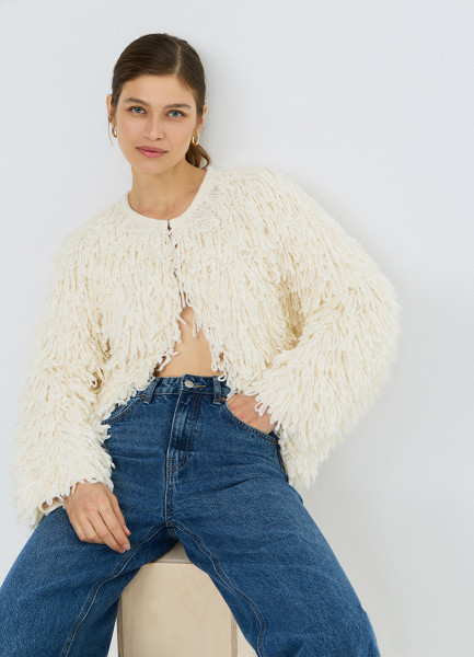 Кардиган с бахромой, Бежевый
