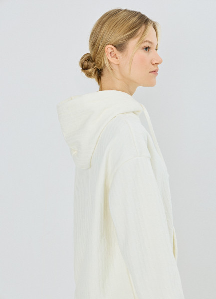 Лицевая сторона: 39% Акрил, 32% Полиэстер, 29% Нейлон; Внутренняя сторона: 94% Полиэстер, 6% Эластан; Подкладка Капюшона: 52% Полиэстер, 48% Хлопок