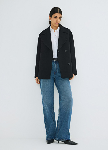 Короткое пальто из шерсти, Черный