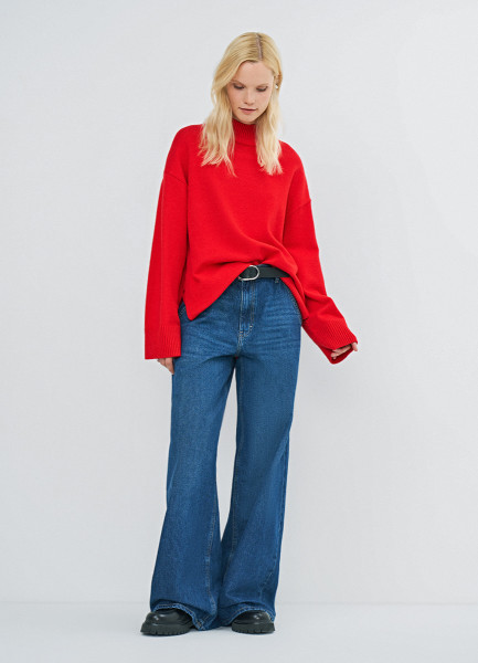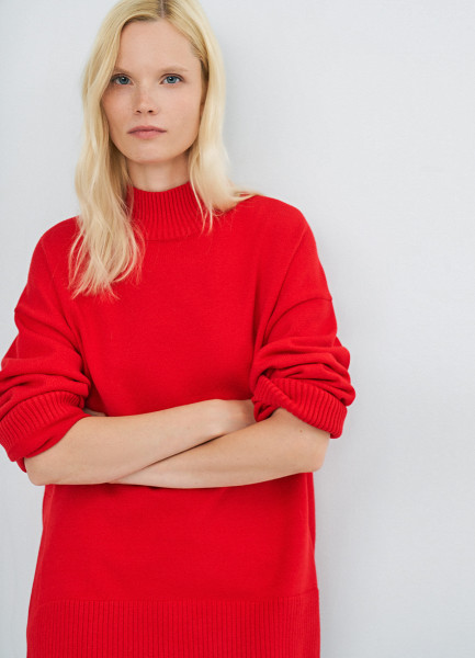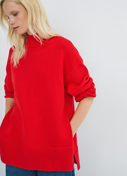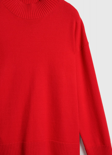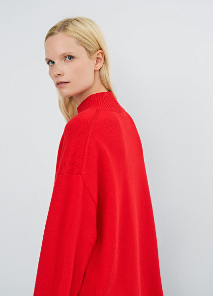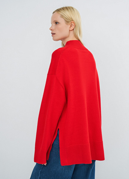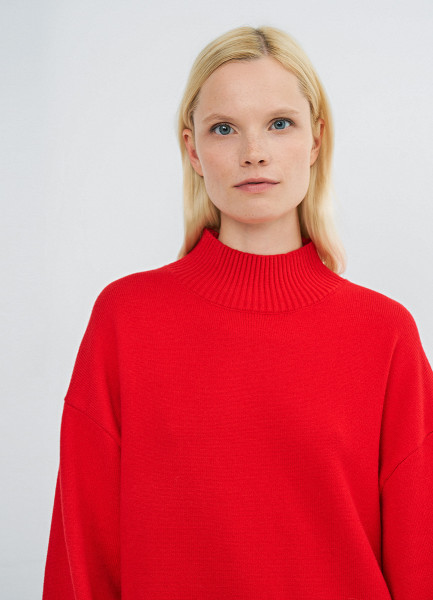 Объёмный джемпер с воротником-стойкой, Красный