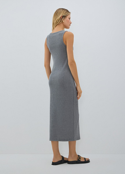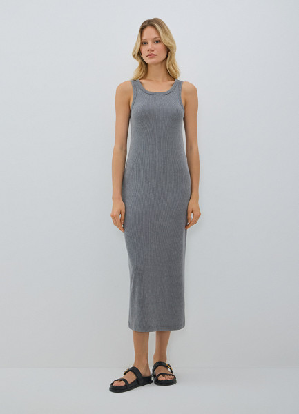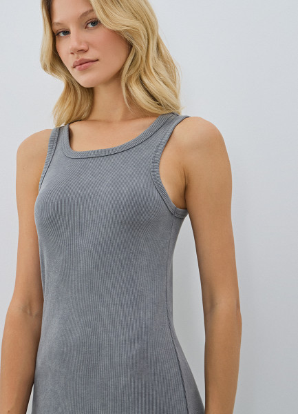 Трикотажное платье-майка в рубчик, Серый