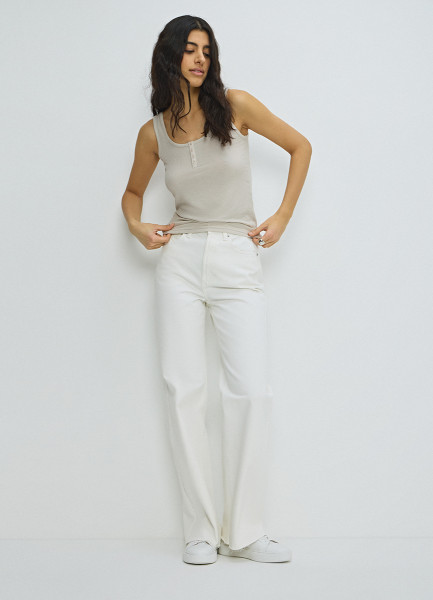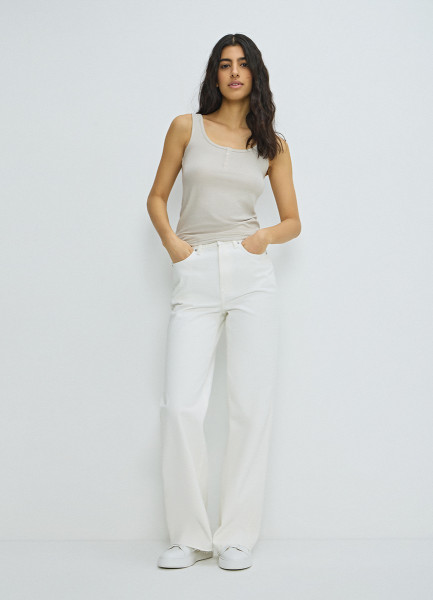 Широкие джинсы с высокой посадкой, Бежевый