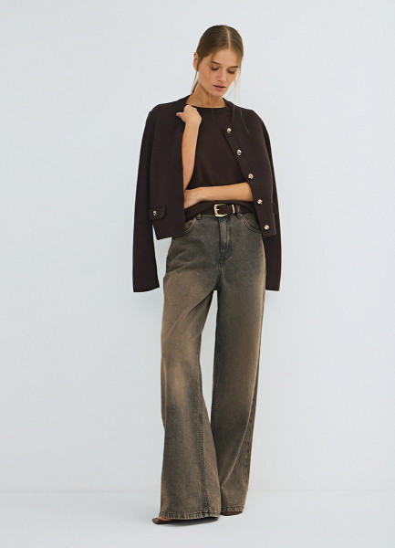 Базовые широкие брюки с эффектом стирки, Бежевый