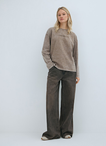 Лонгслив с принтом и эффектом стирки, Бежевый