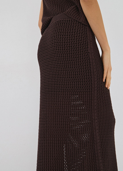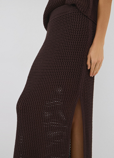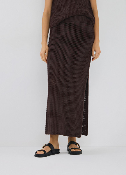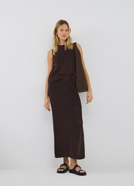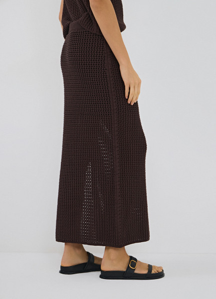 Юбка макси ажурной вязки, Коричневый