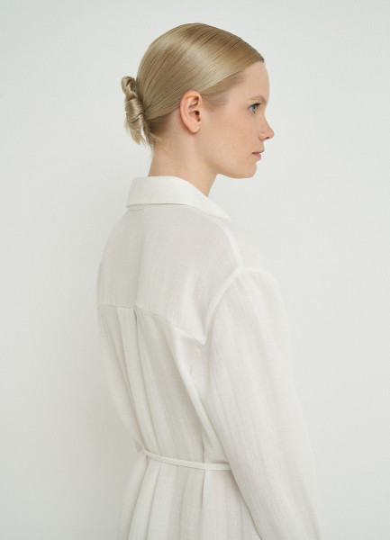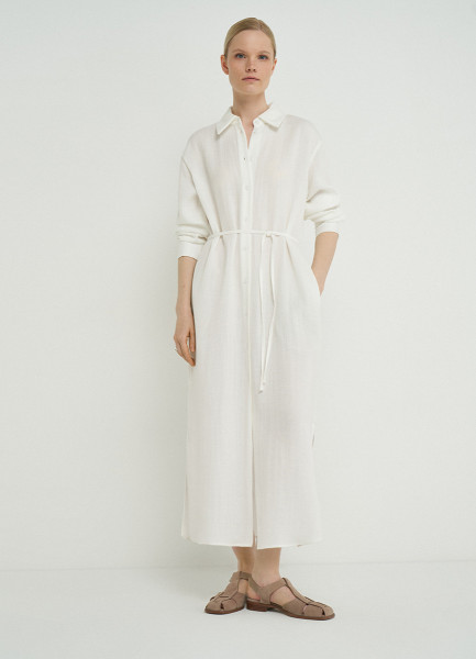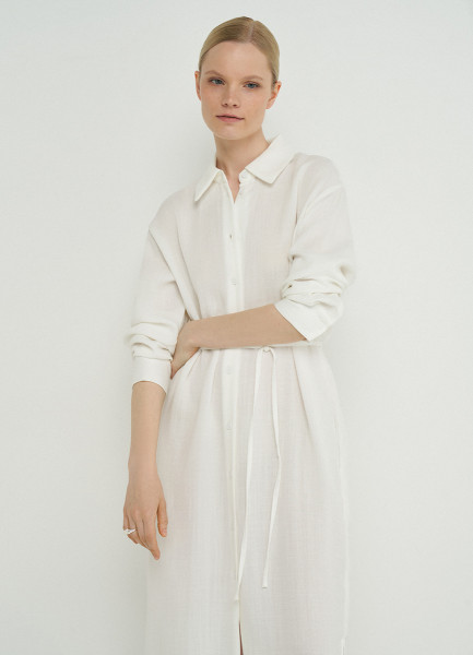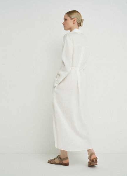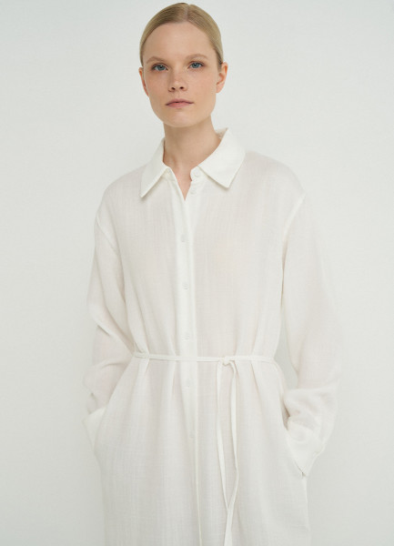 Платье-рубашка с поясом, Белый