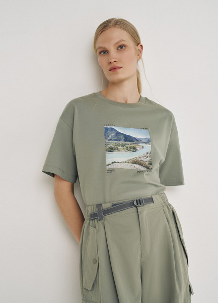 Футболка с географическим принтом O'STIN х Экспедиция, Зеленый