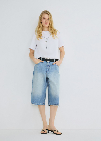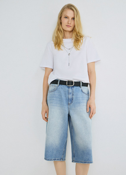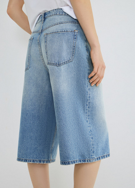 Джинсовые шорты-бермуды с высокой посадкой, Голубой